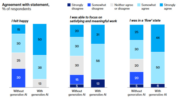 Equipping developers to be their most productive also significantly improves the developer experience, which in turn can help companies retain and excite their best talent. This can be attributed to the generative AI and AI Co- Pilot tools’ ability to automate grunt work that kept developers from more satisfying tasks and to put information at their fingertips faster than a search for solutions across different online platforms. (McKinsey)