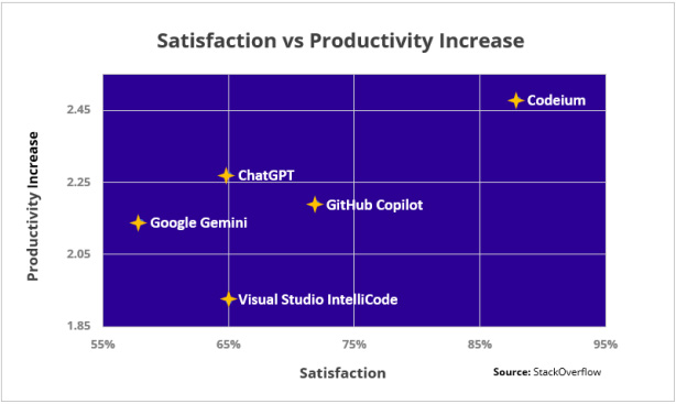 The nature of these tools lend themselves to work well when trained well; a tool such as GitHub Copilot that is trained on publicly available code will be good at JavaScript for frontend developers and not so good with enterprise and proprietary code scenarios that business analysts and desktop developers face regularly. (StackOverflow, May 29, 2024 “Developers get by with a little help from AI: Stack Overflow Knows code assistant pulse survey results”.)